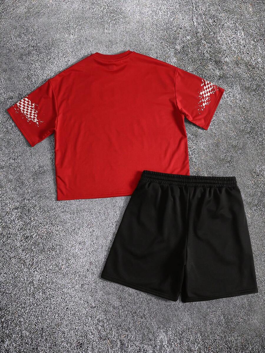 Conjunto de camiseta y pantalones cortos con estampado de coche de carreras para hombre, corte holgado