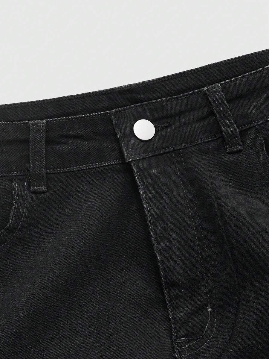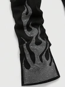 Jeans con pierna acampanada con estampado de llamas y aplicaciones de rhinestones para hombres