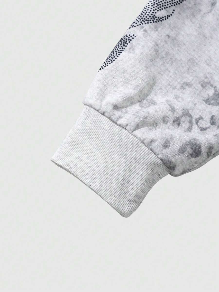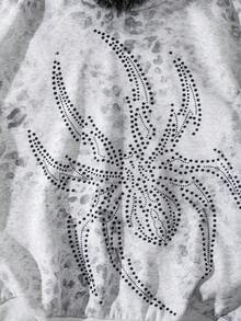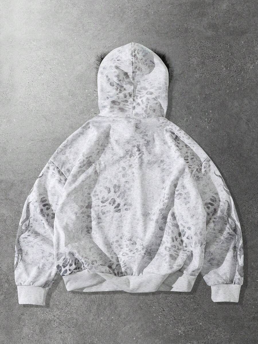 Sudadera con capucha de manga larga con estampado de araña de rhinestone y cuello de piel para hombre