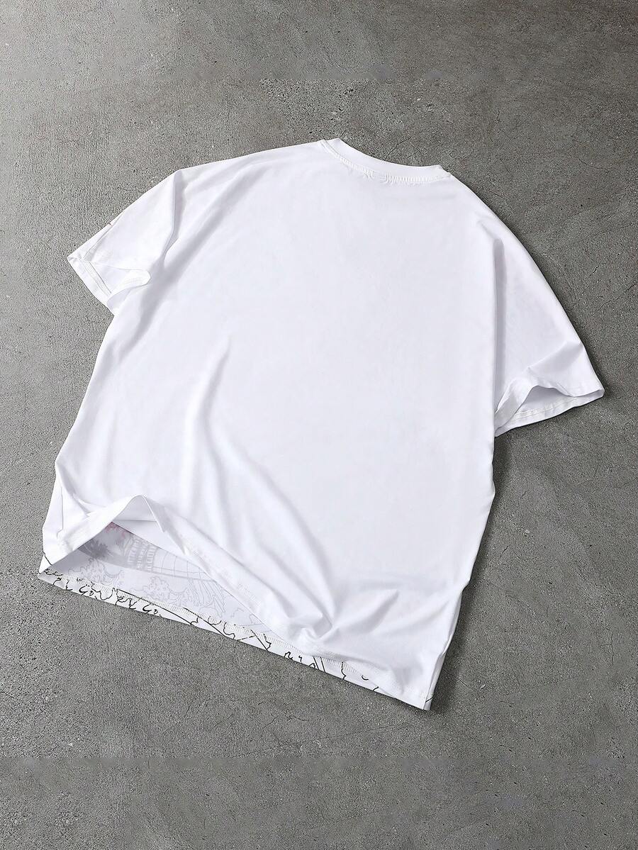 Camiseta de manga corta de cuello redondo con estampado de letras de dibujos animados, casual y versátil para ir al trabajo
