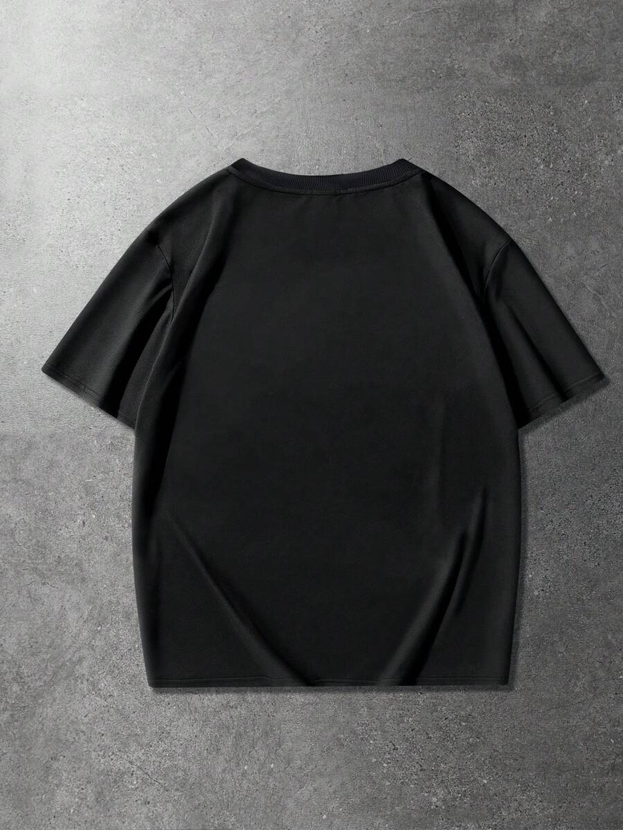 Camiseta de manga corta de cuello redondo con bordado de corazón, de uso casual y versátil para uso diario para hombres