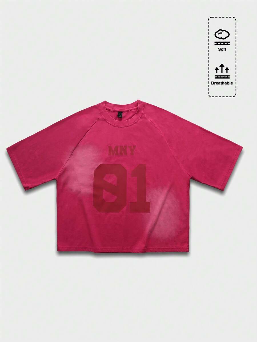 Camiseta de manga corta de cuello redondo con estampado de letras y números, de uso casual y versátil para uso diario
