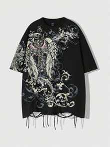 Camiseta de manga corta de cuello redondo con estampado de alas, de uso casual y versátil para uso diario