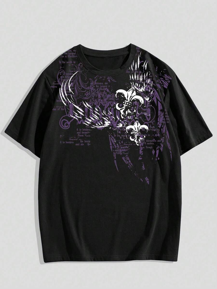 Goth Camiseta de manga corta de cuello redondo con estampado de eslogan, corte holgado y casual para hombre