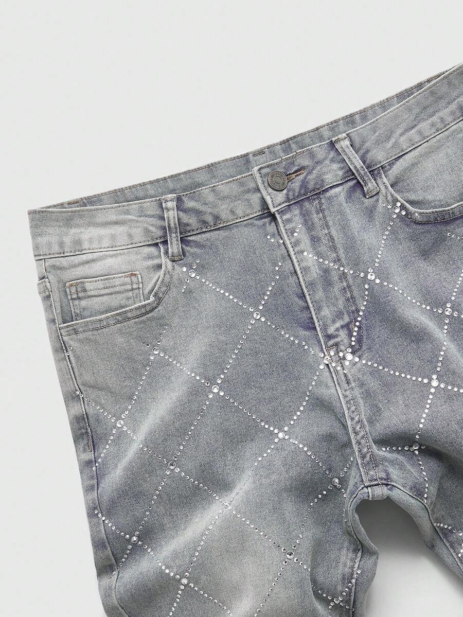 Jeans casuales con bolsillo con diamantes brillantes para hombre