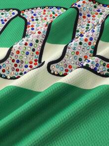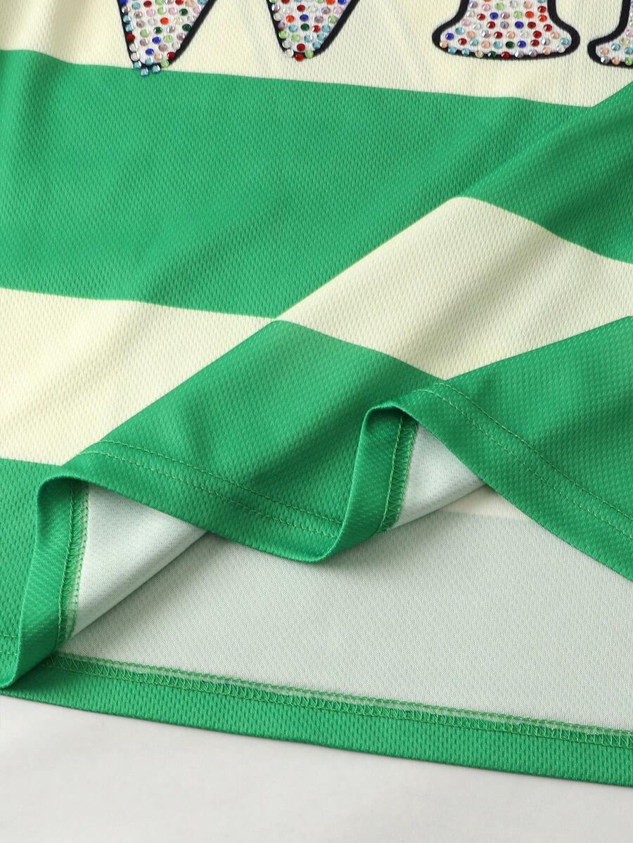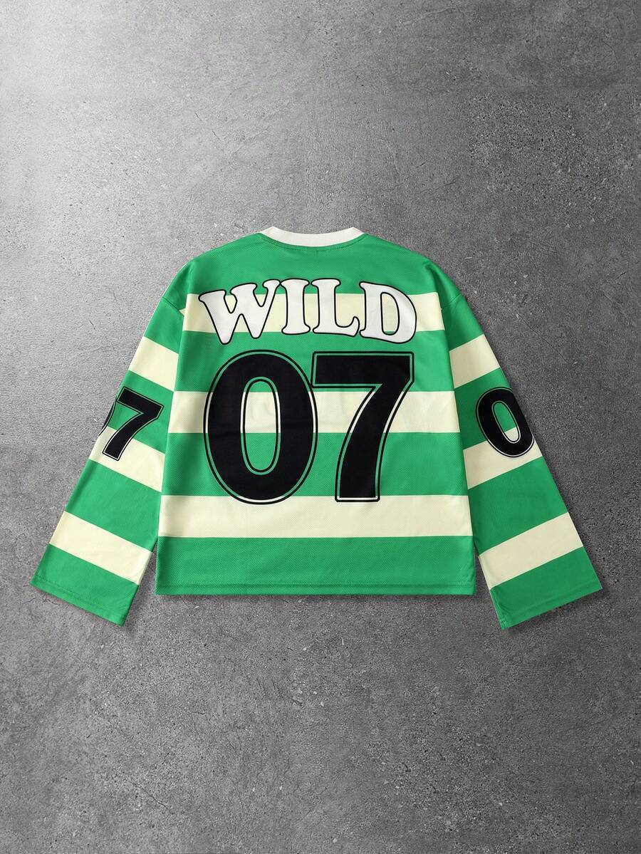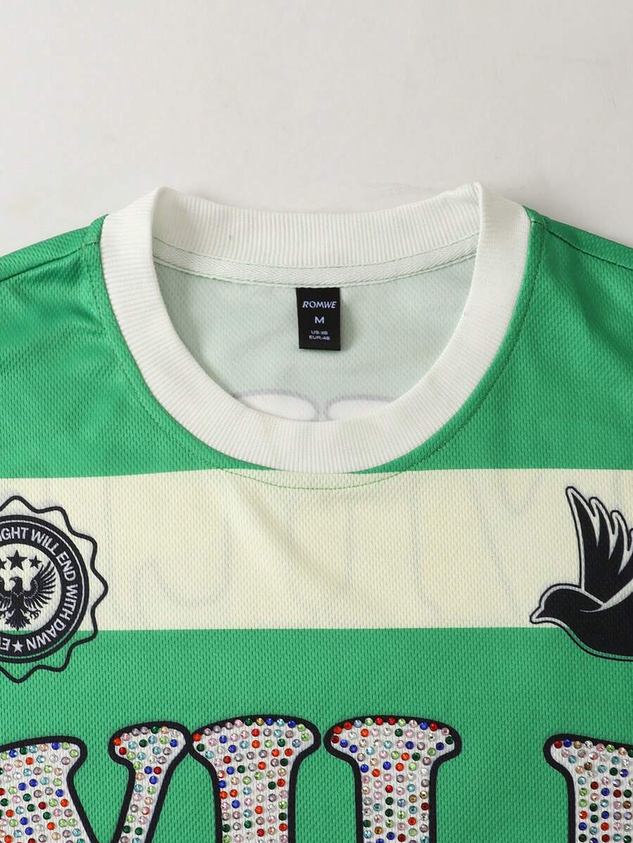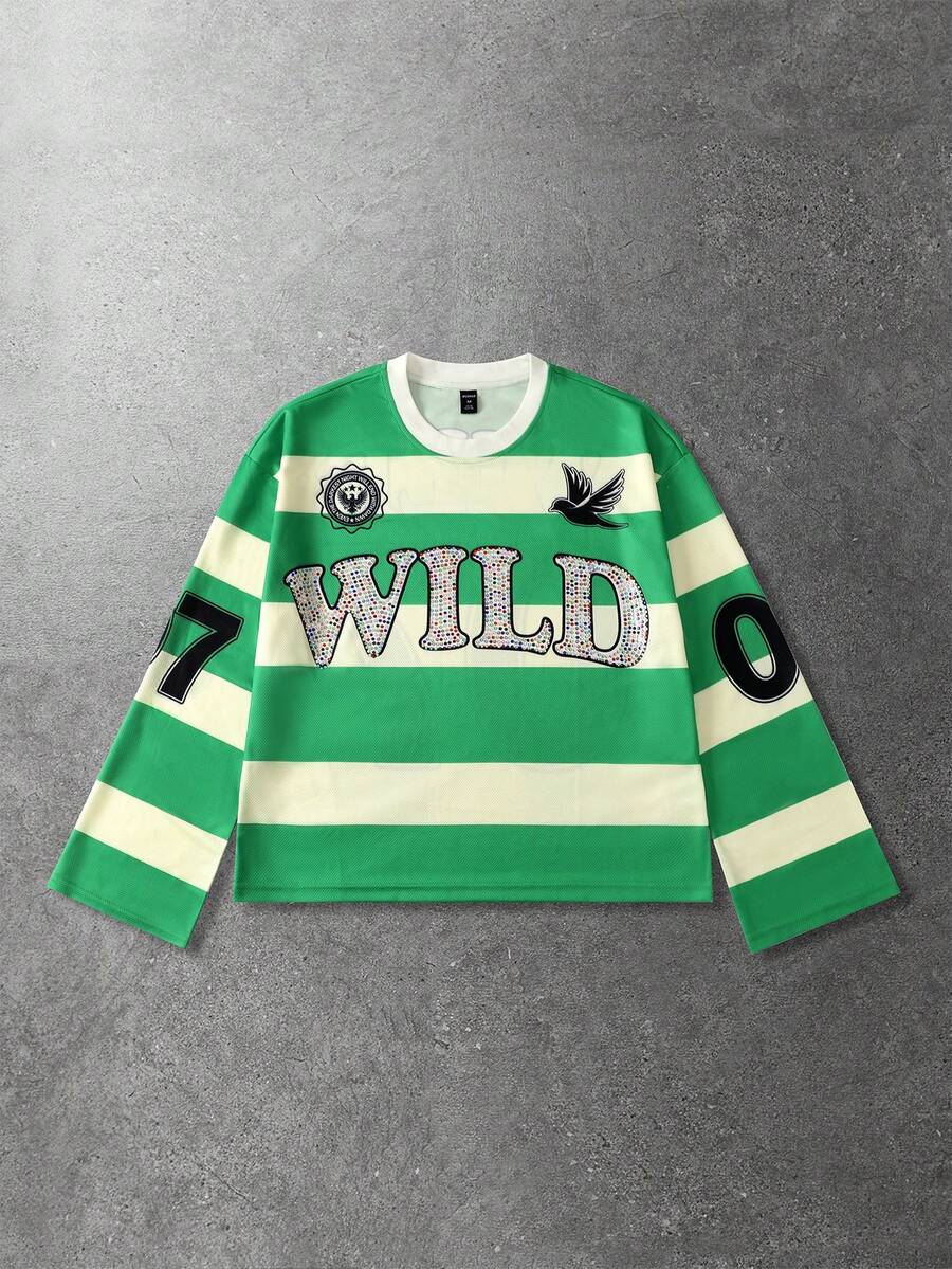 Prep Camiseta de manga larga con estampado de diamantes brillantes y rayas para hombre