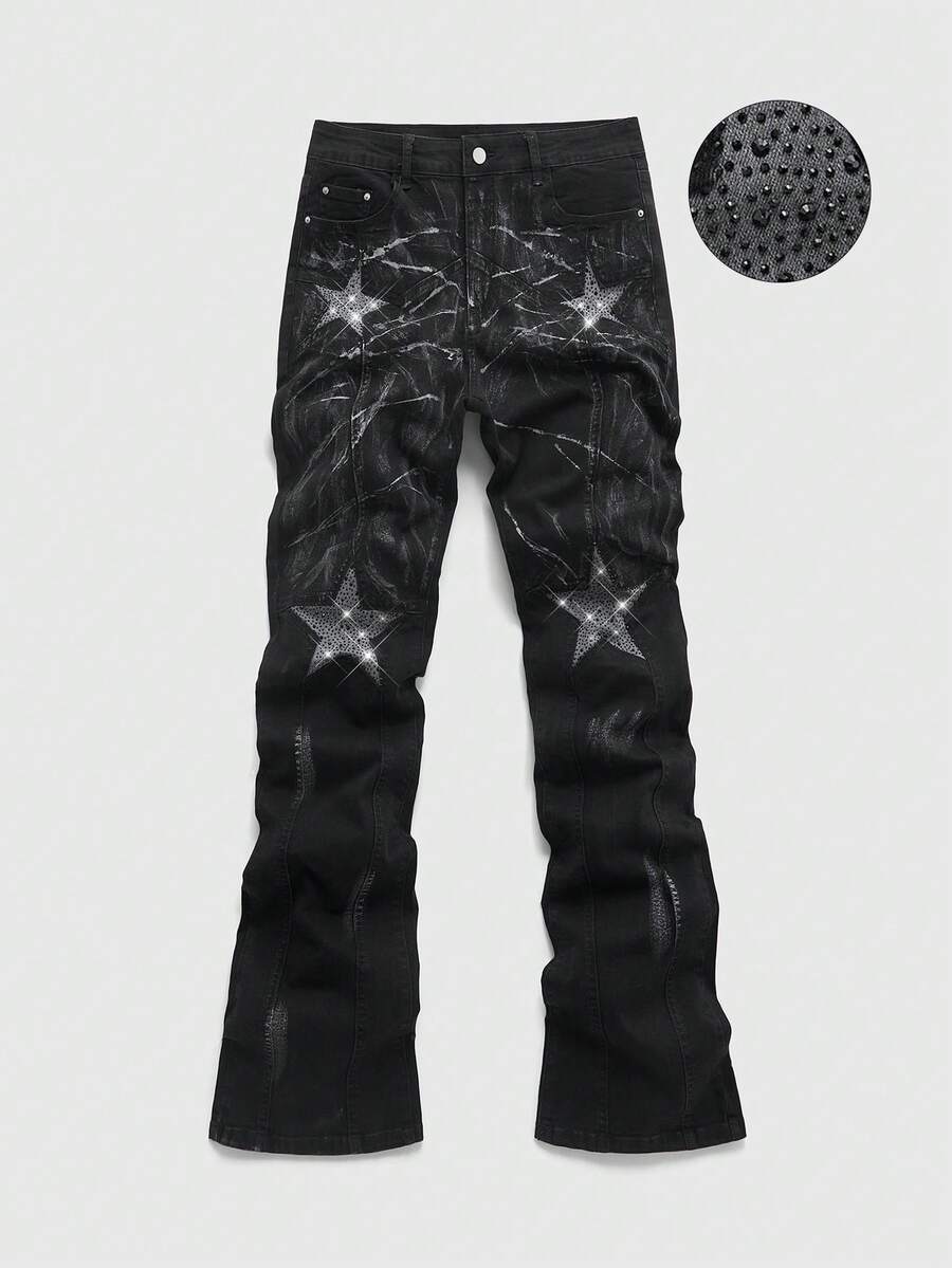 Jeans de mezclilla con diamantes brillantes en capas para hombres