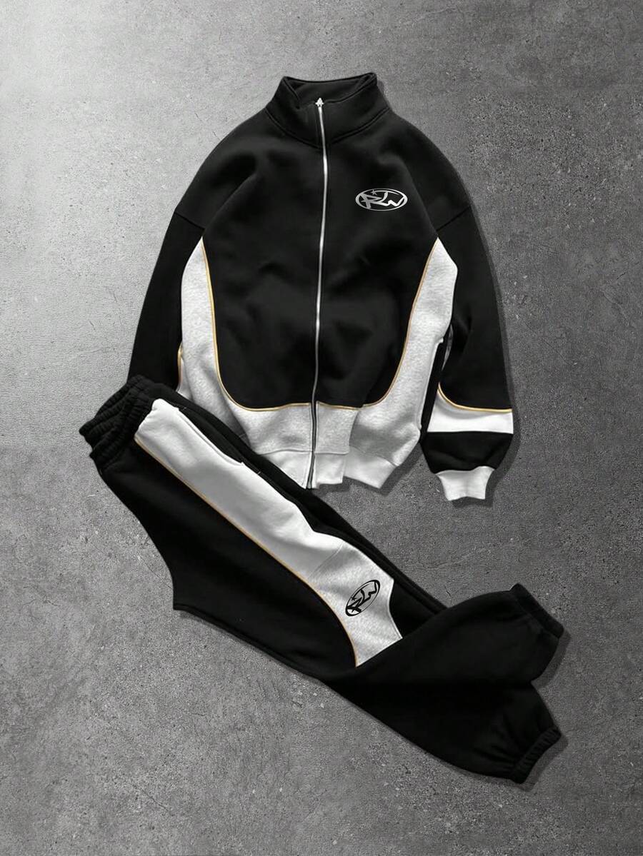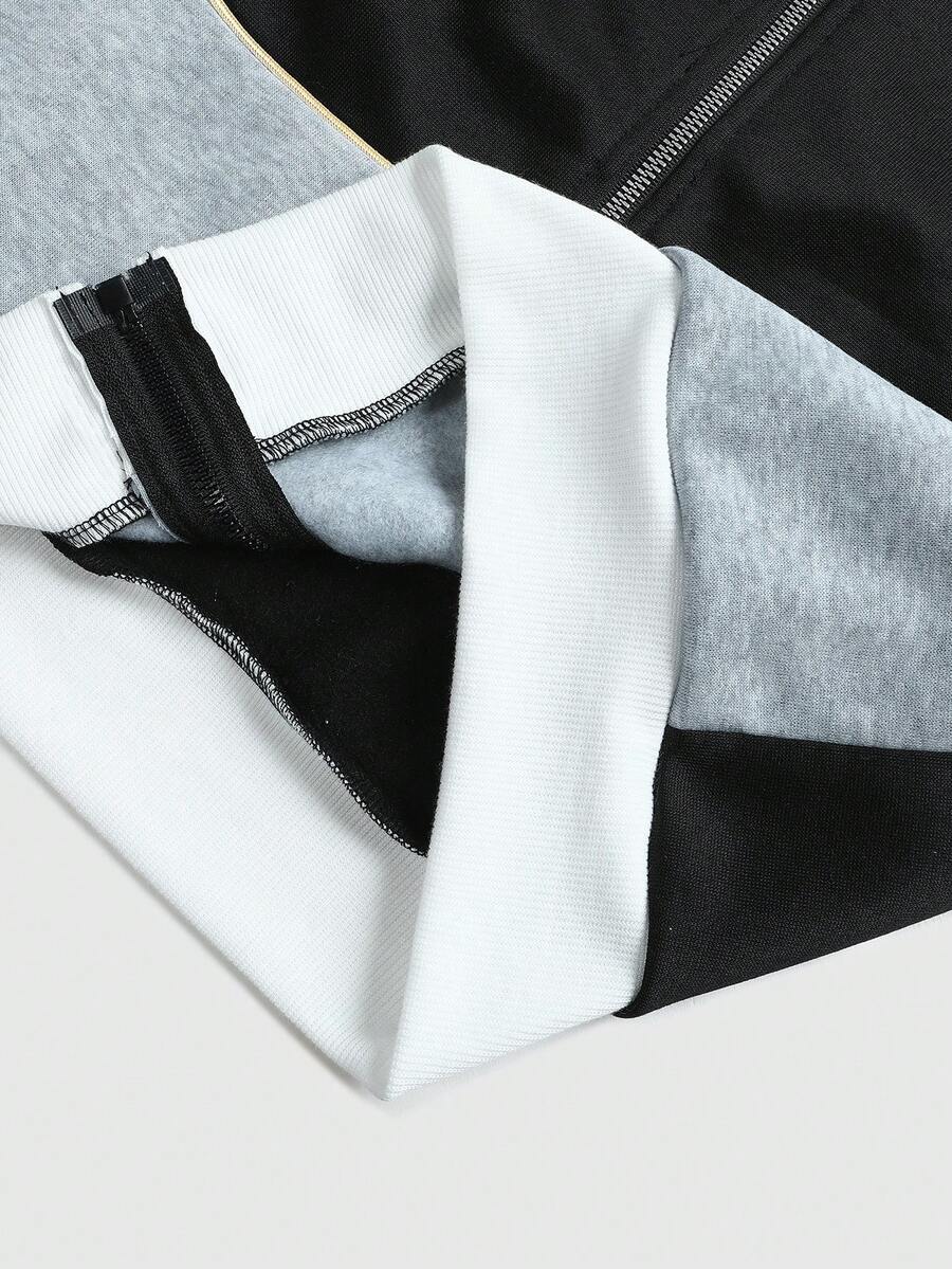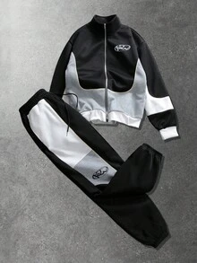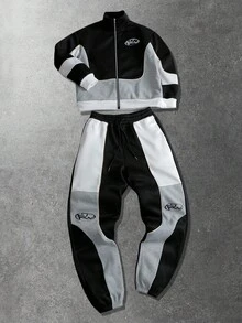 Conjunto casual de sudadera con capucha de manga larga con cremallera y estampado de letras de cuello alto y pantalón de chándal con cordón en la cintura para hombres, ideal para vacaciones, ir al trabajo y viajar