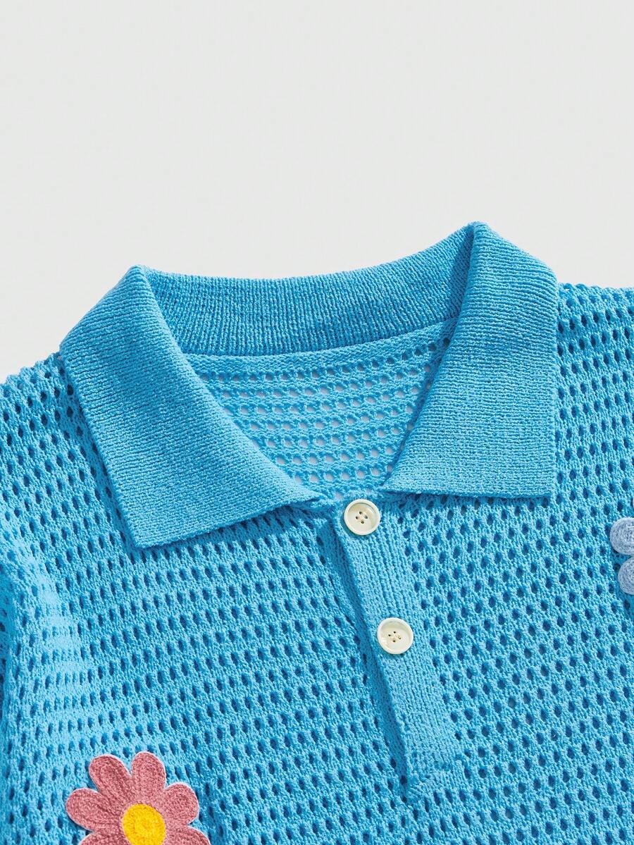 Street Life Camisa polo de punto holgada con hombros caídos y calado, con patrón floral bordado, excelente para vacaciones