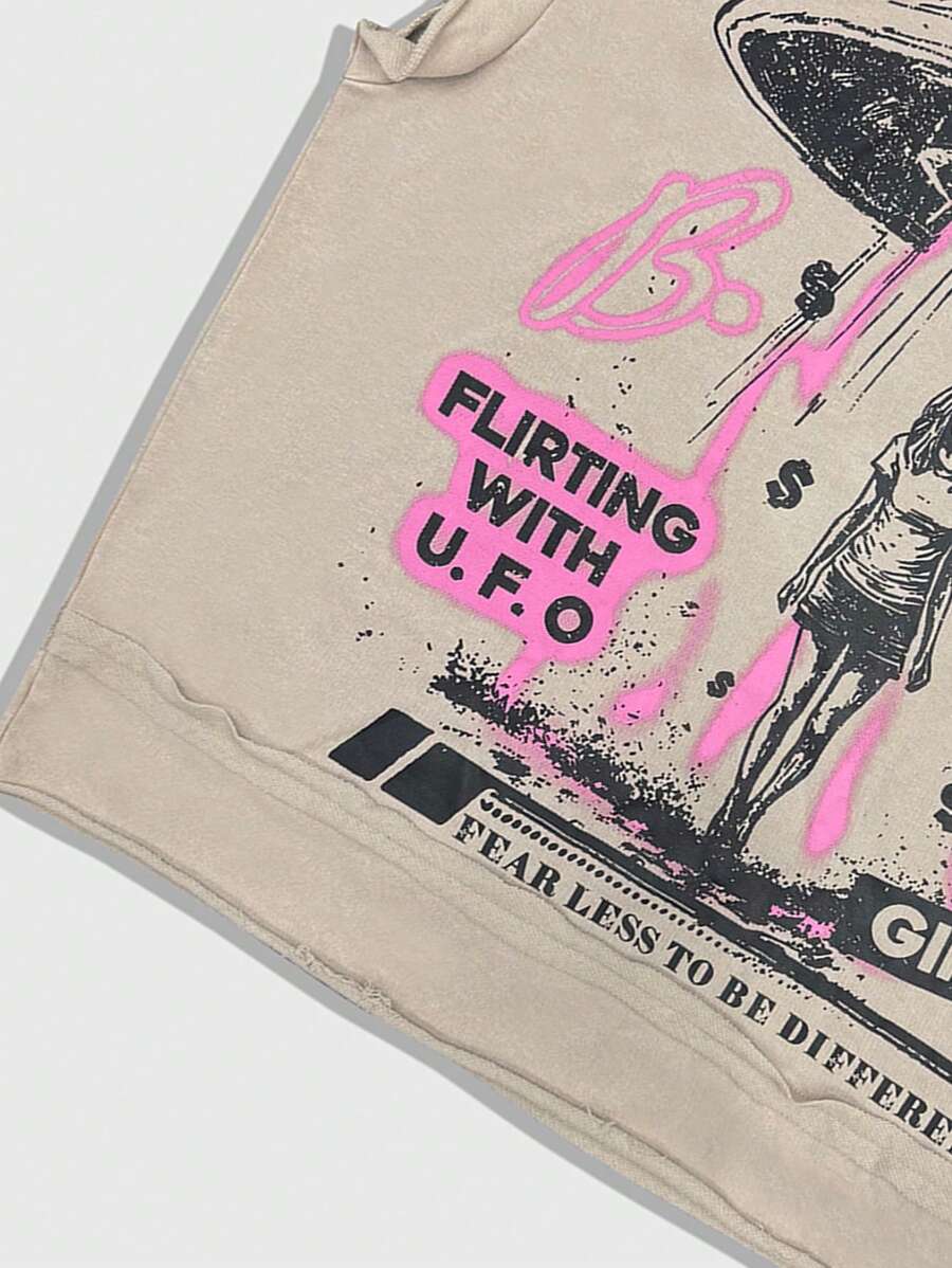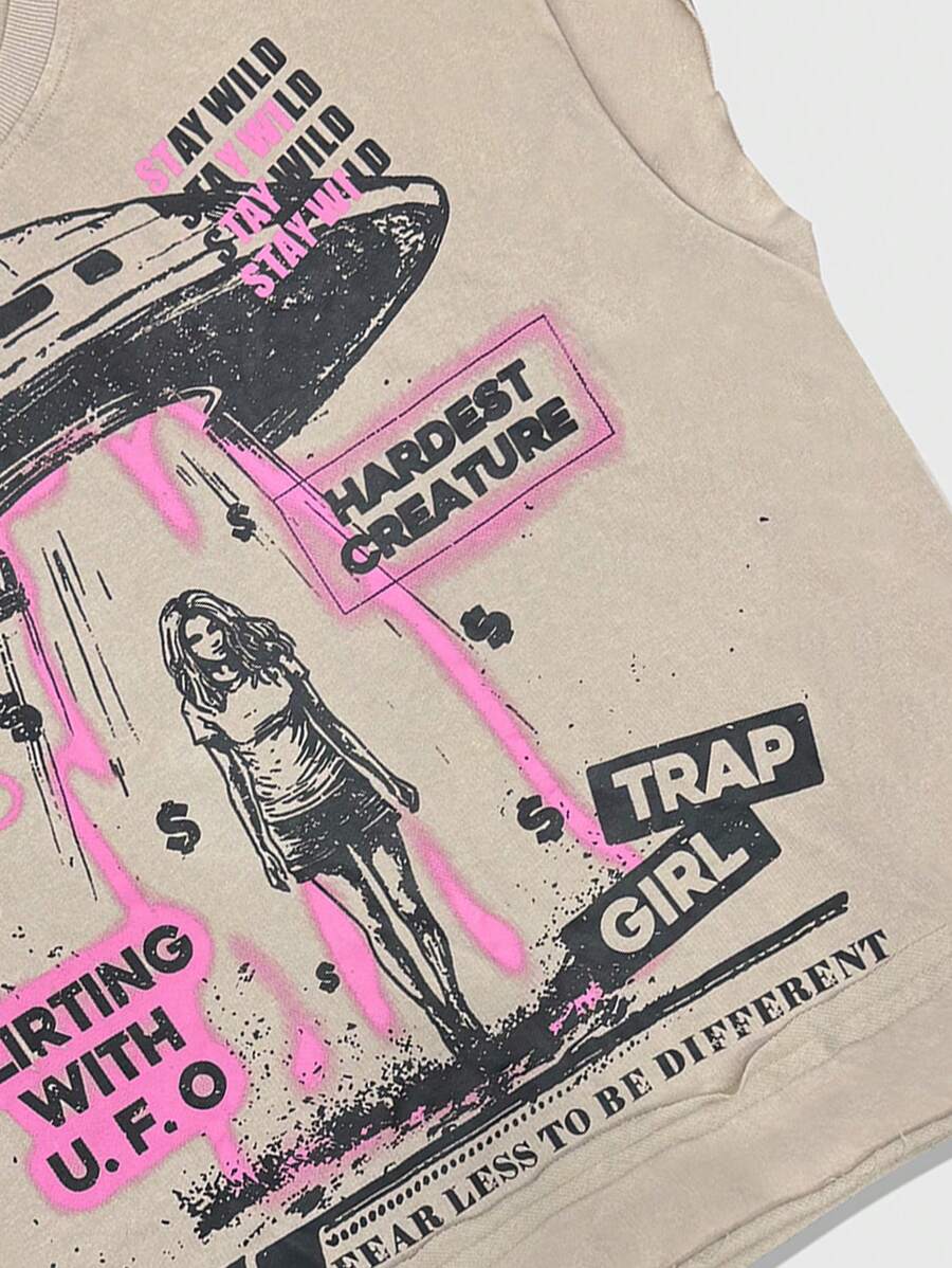 Street Life Chaleco informal de cuello redondo con estampado de letras y números para hombres en verano