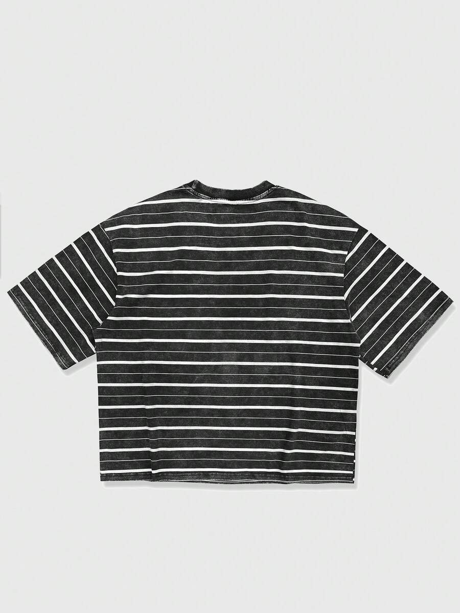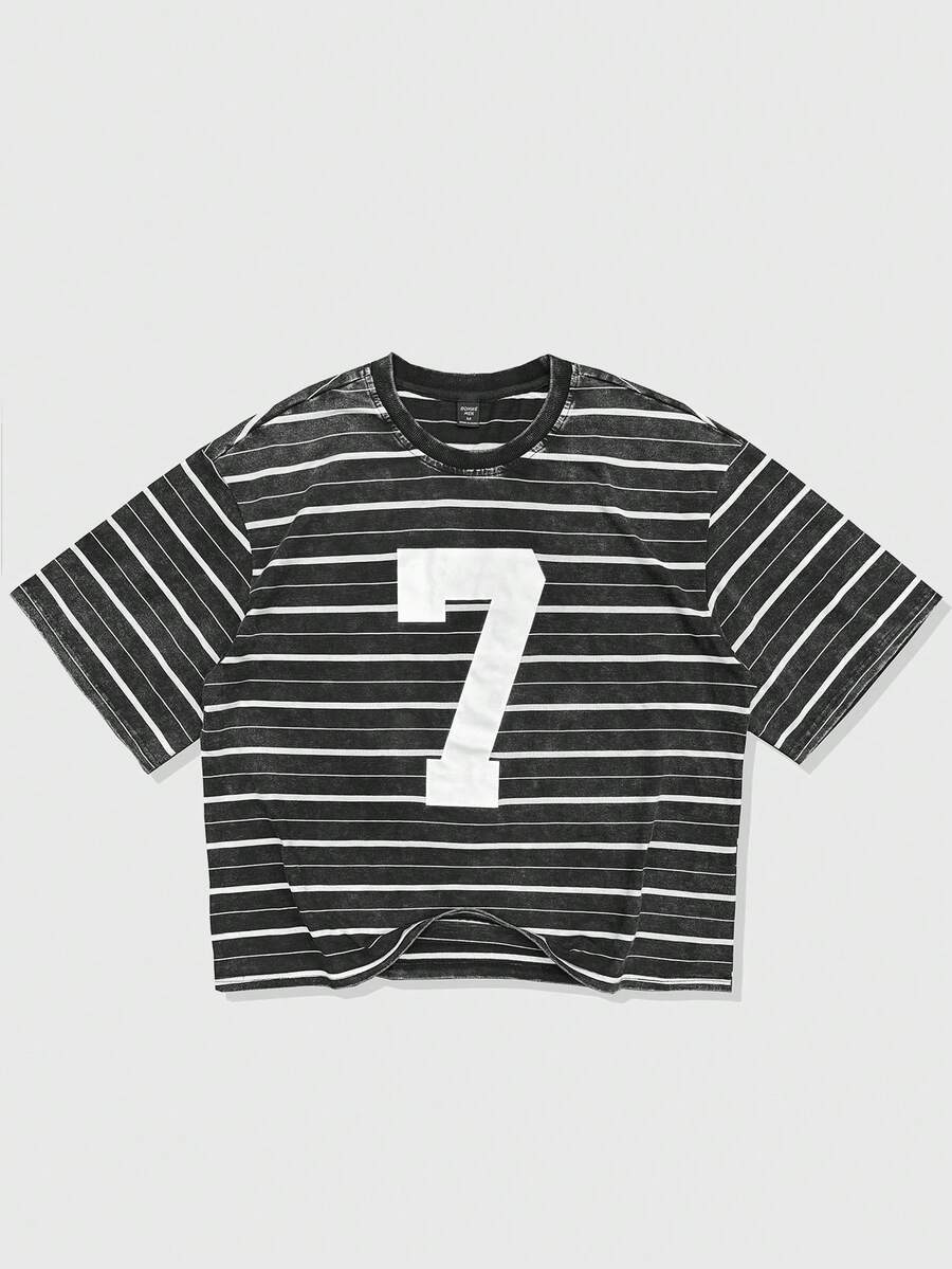 Camiseta casual de cuello redondo de manga corta con estampado de rayas y números para hombres