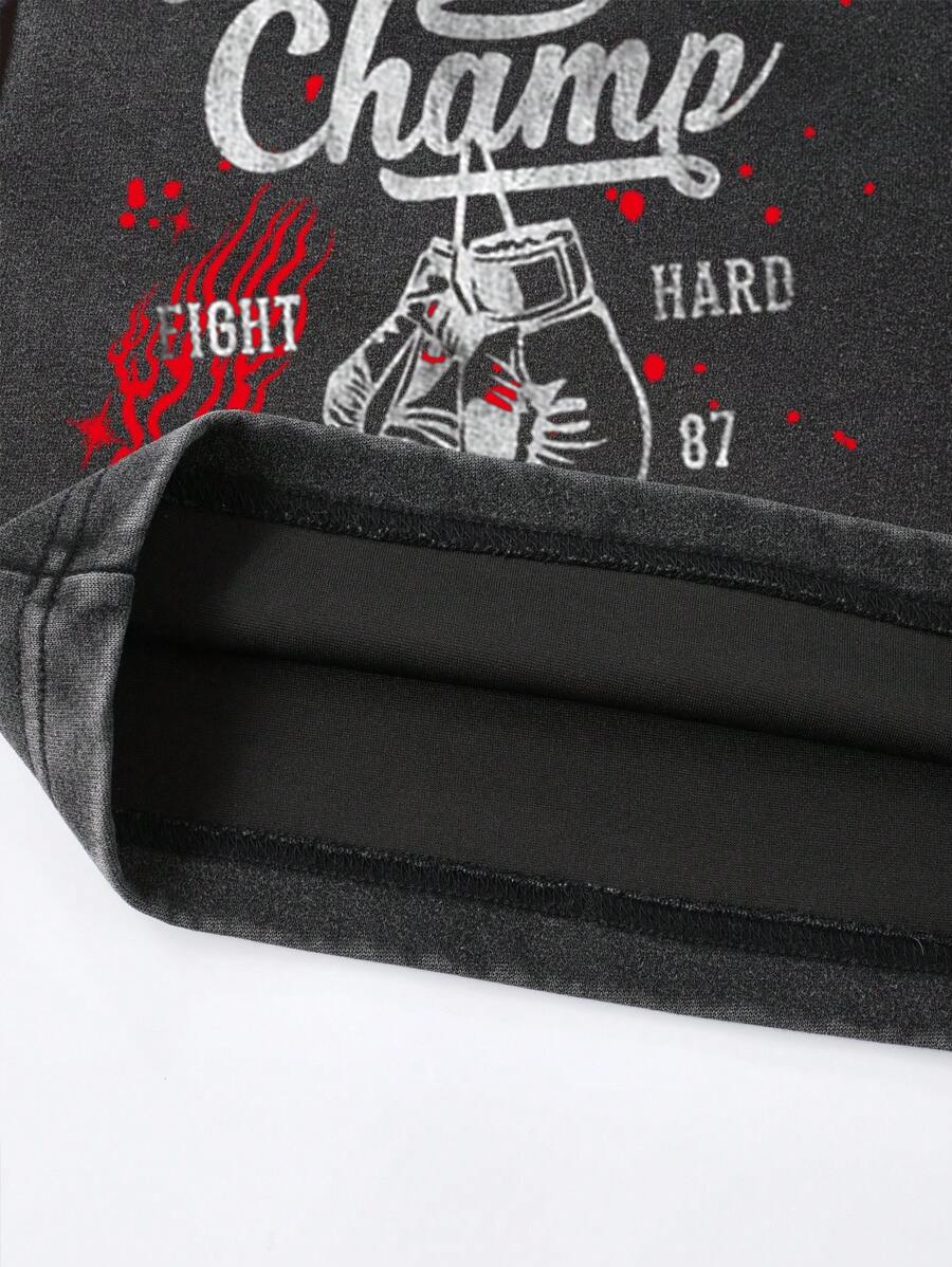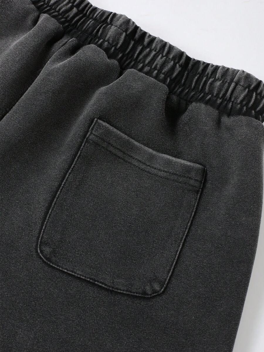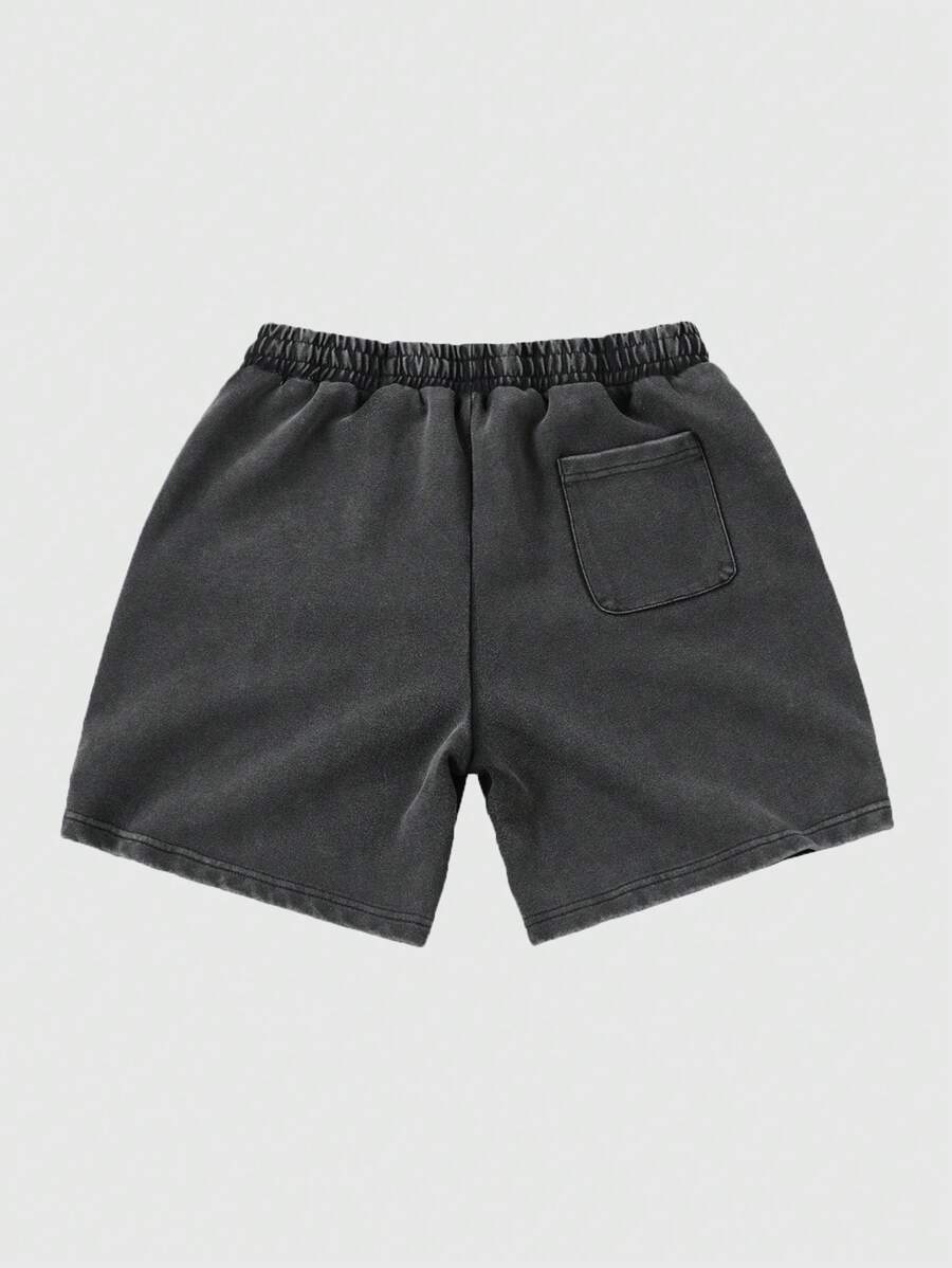 Anime Pantalones cortos casuales con estampado lavado para hombres, estilo urbano retro