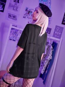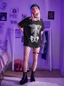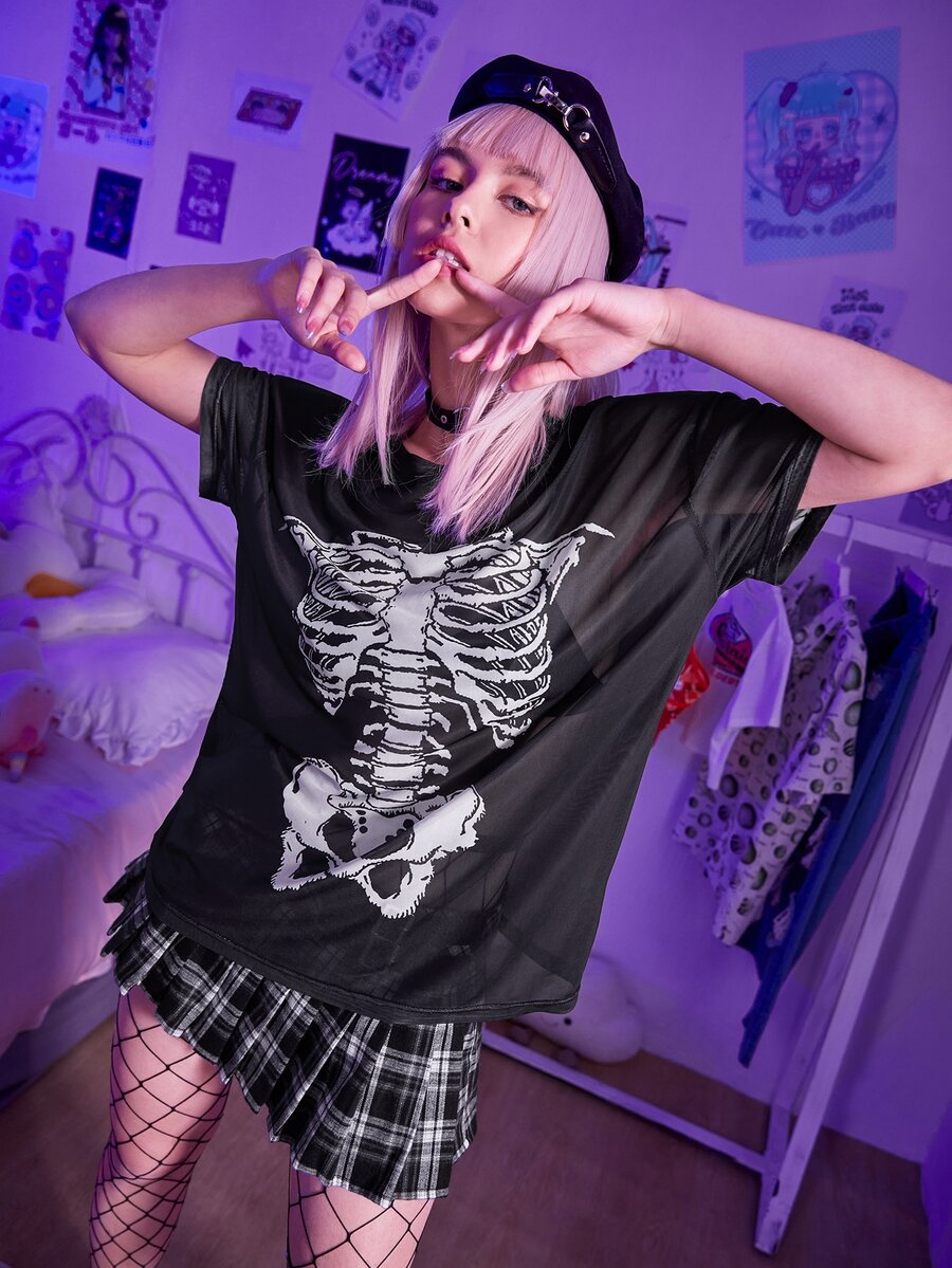 Top de malla con estampado de cráneo