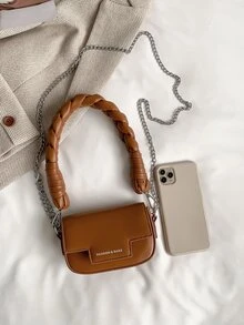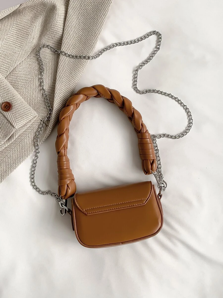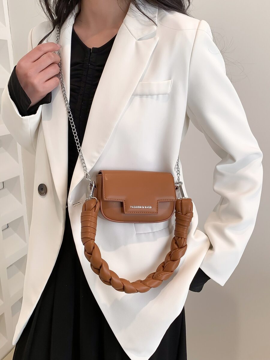 Bolsa cuadrada mini con diseño trenzado con solapa