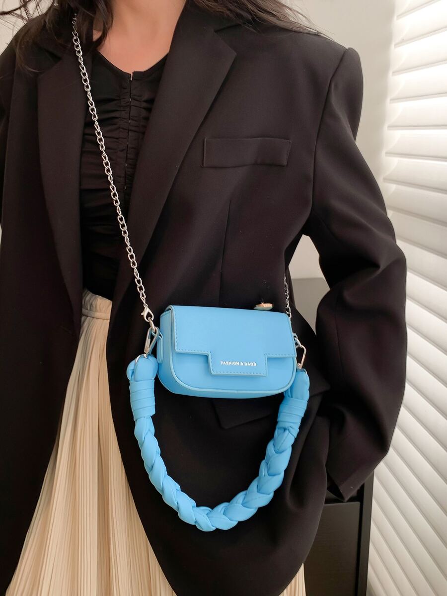 Bolsa cuadrada mini con diseño trenzado con solapa