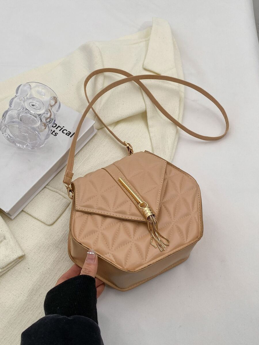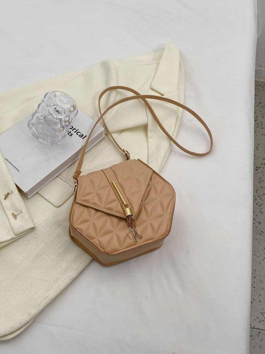 Bolsa creativa mini con solapa con patrón guateado con diseño de fleco