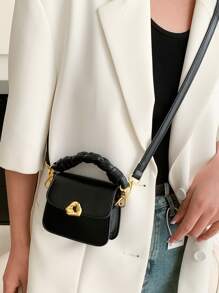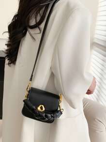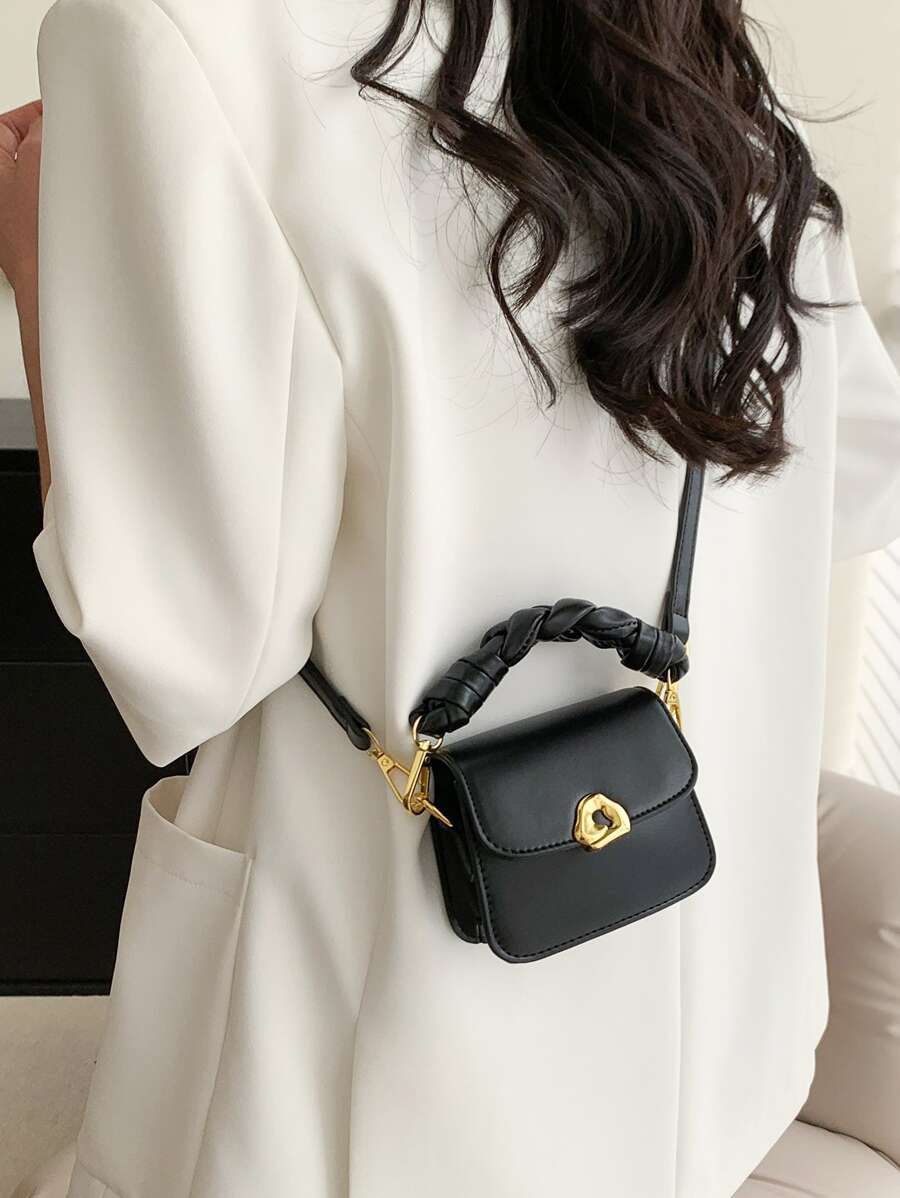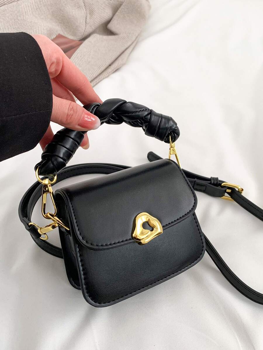 Bolsa cuadrada mini con solapa con diseño metal PU trenzado asa