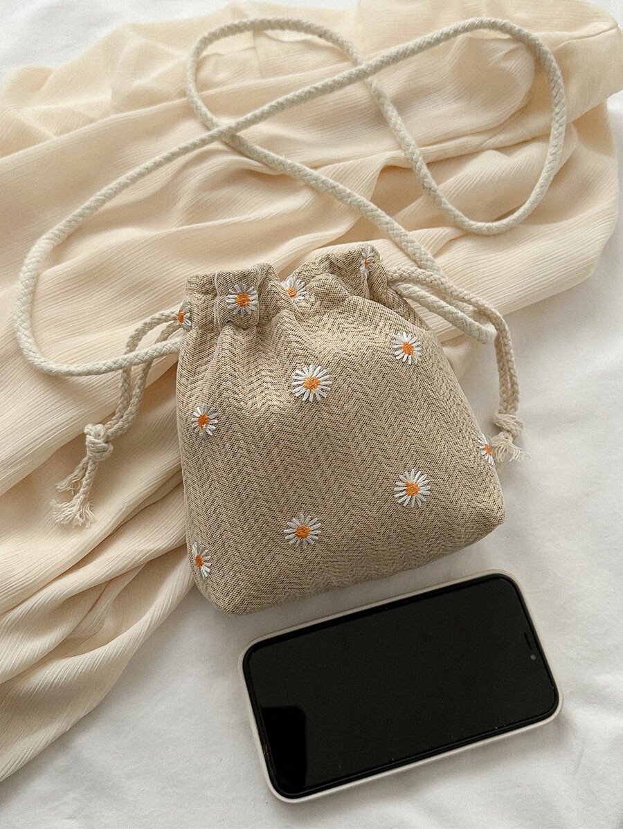 Diseño de cordón con bordado floral mini, bolso de paja, bolsa de playa de paja, elementos esenciales para la playa, cosas de playa y elementos esenciales de verano