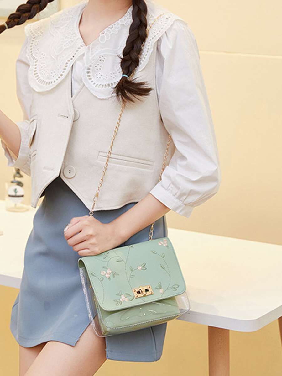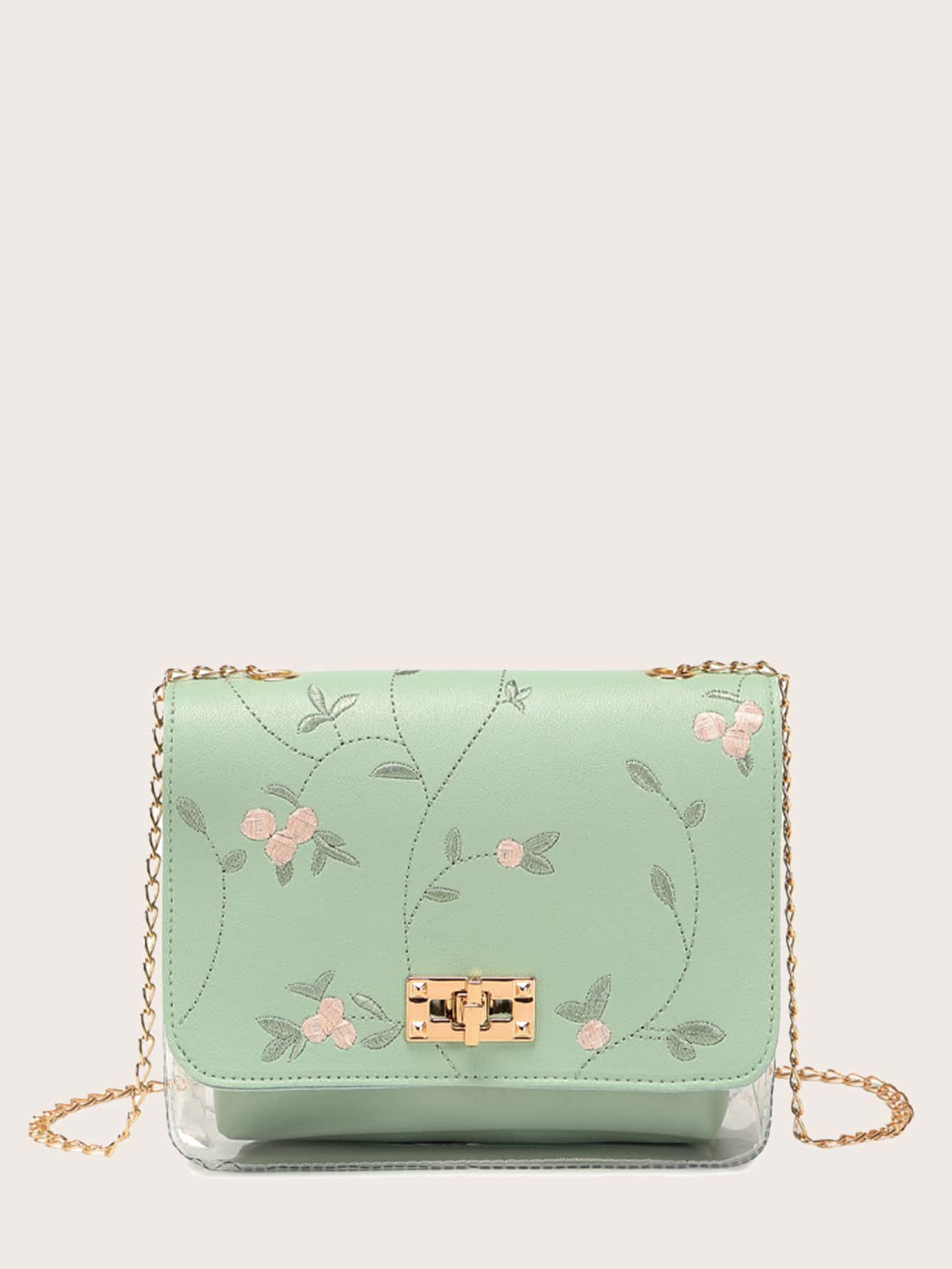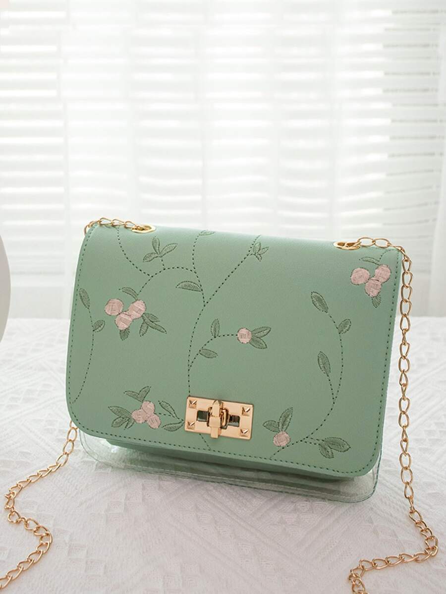 Bolsa cuadrada mini con bordado floral con solapa