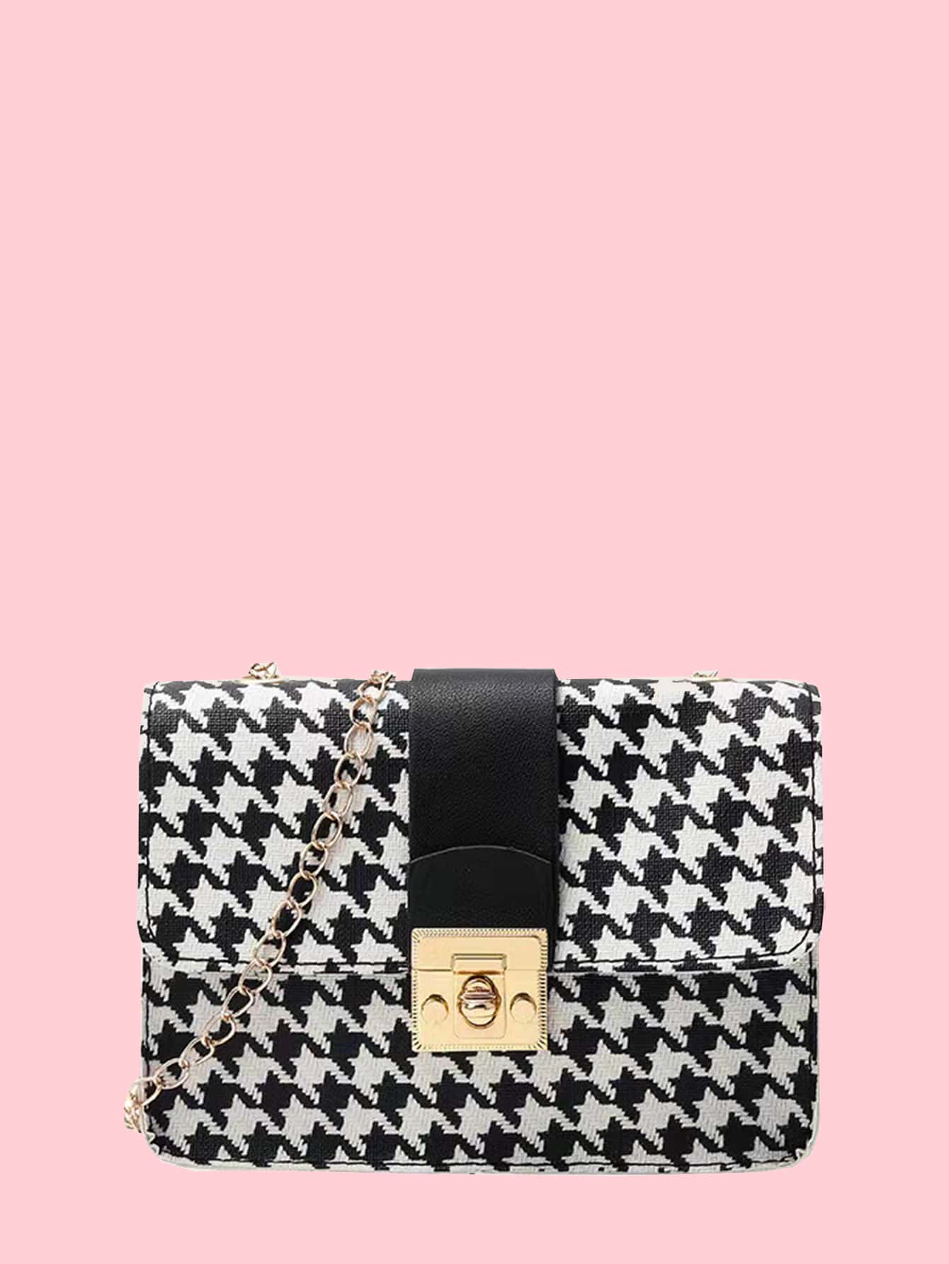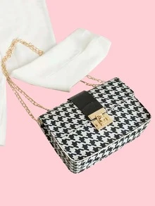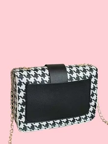 Bolsa cuadrada mini con patrón de pata de gallo con solapa con cadena