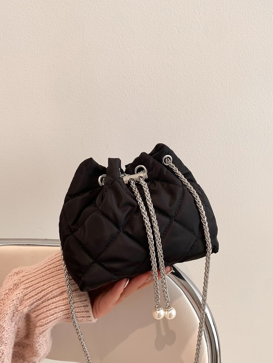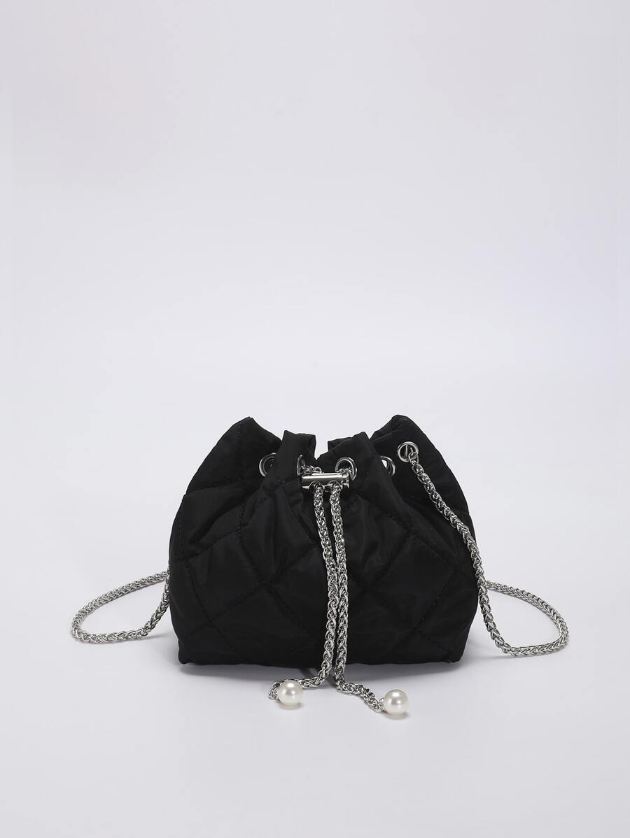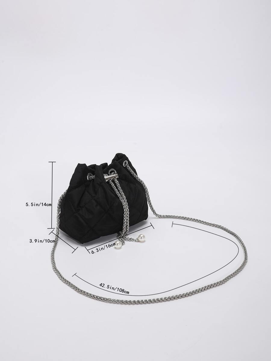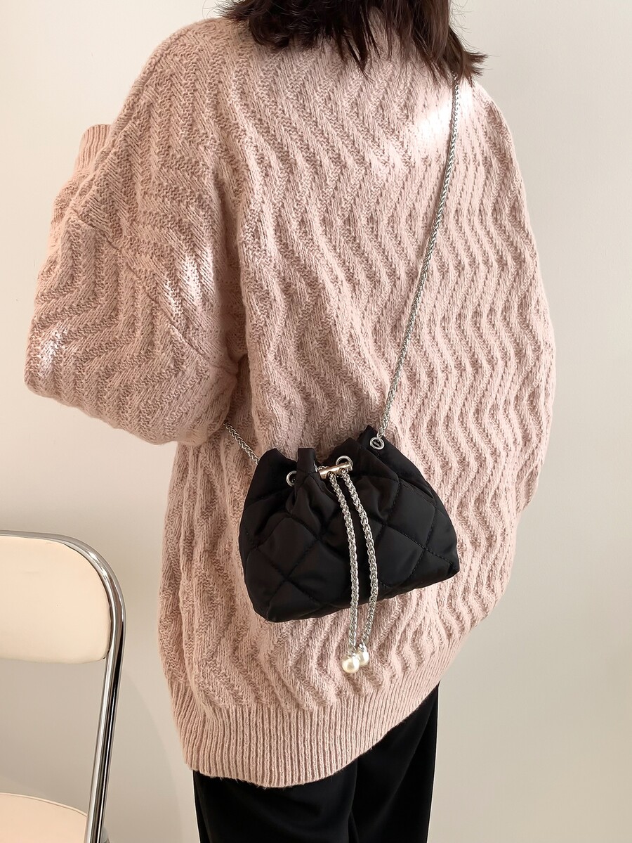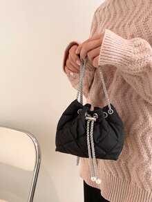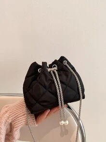 Bolso cubo mini guateado con diseño de perla artificial