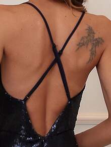 Missord Vestido de fiesta con lentejuelas bajo sirena de espalda abierta con tiras cruzadas