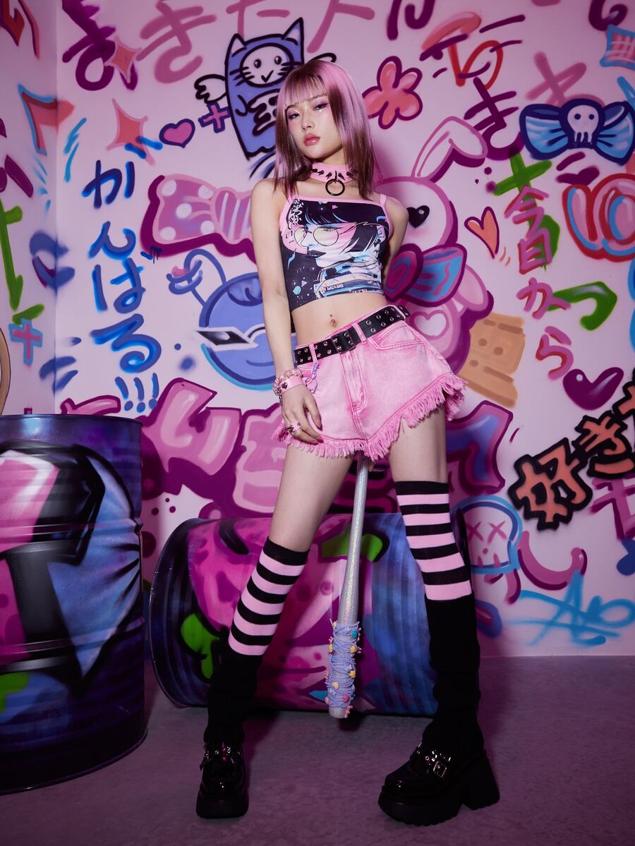 Mizucat Anime Top de tirantes con estampado de figura