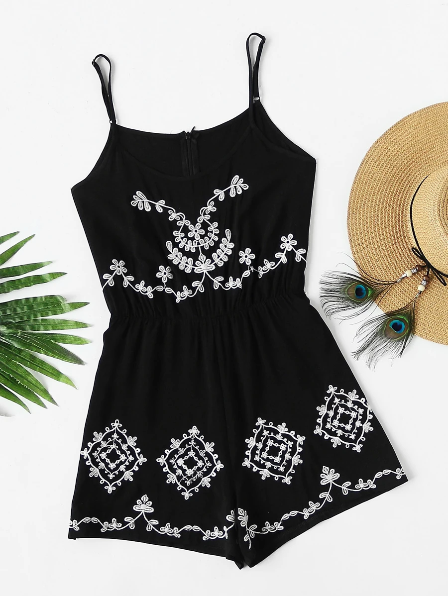 Mono corto de tirantes con bordados en contraste