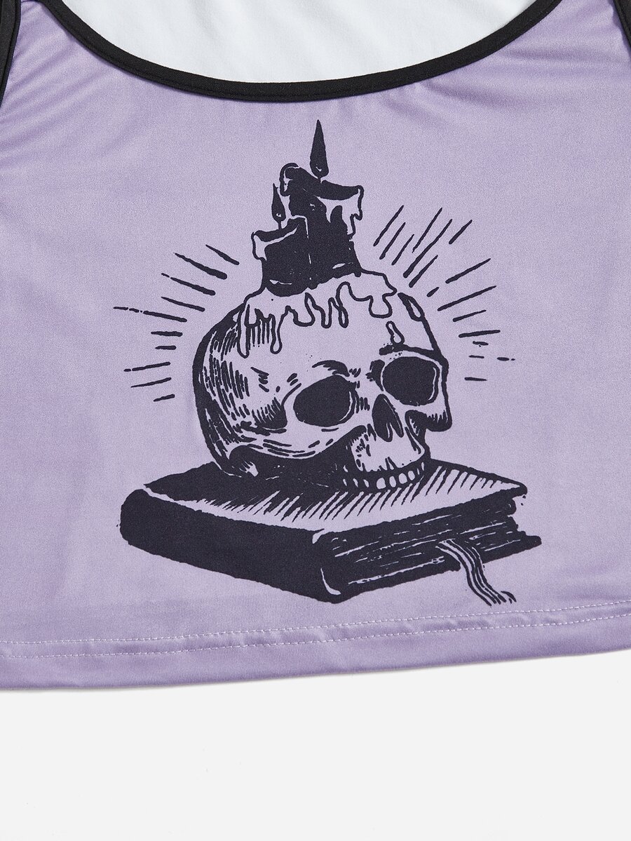 Mountain Vintage Press Conjunto de pijama con estampado de cráneo de cuadros unido en contraste