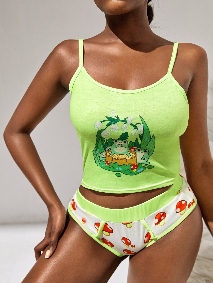 Kawaii Conjunto de pijama seta & con estampado de rana