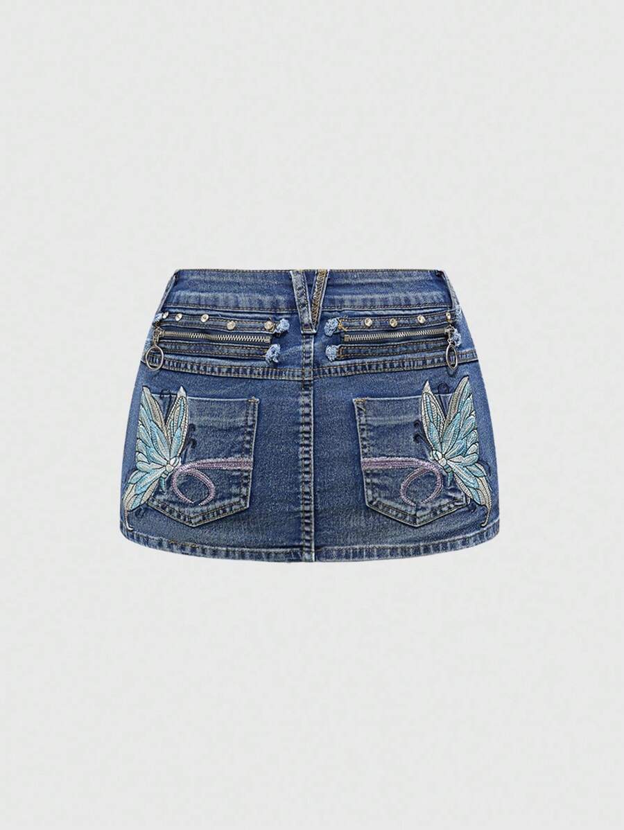 Fairycore Minifalda de mezclilla con estampado de mariposa, moda para mujeres en festivales de música
