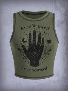 Mystic heart Top tank con letra con estampado de mano de canalé