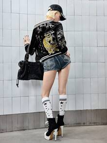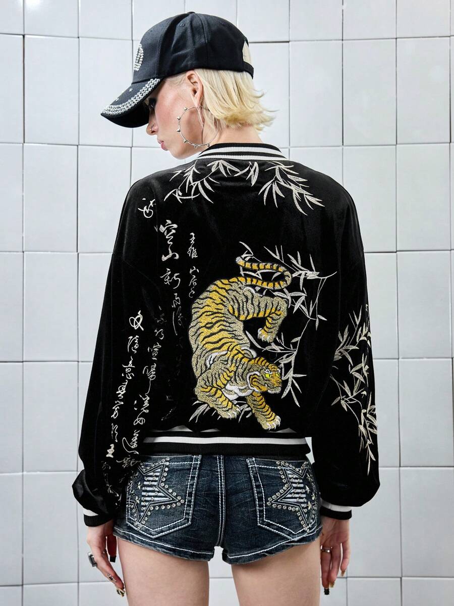 Nueva chaqueta bordada con estilo chino, con tigre y hojas de bambú