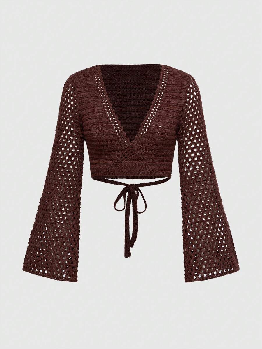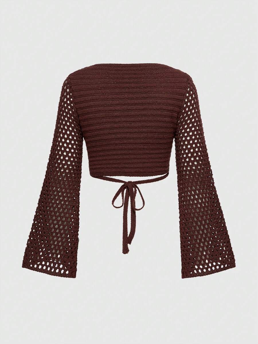 Fairycore Cárdigan corto tejido de malla con diseño retro Y2K estilo fairycore, con tirantes en forma de cruz hueco, parte superior corta informal