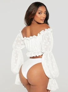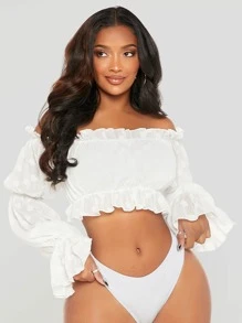 Blusa de hombros descubiertos ribete con fruncido de manga fruncido de gasa