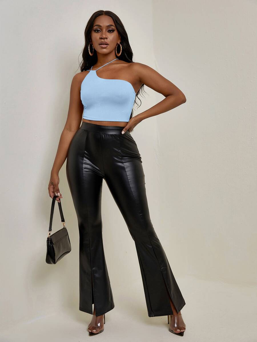 Top corto de un hombro unicolor