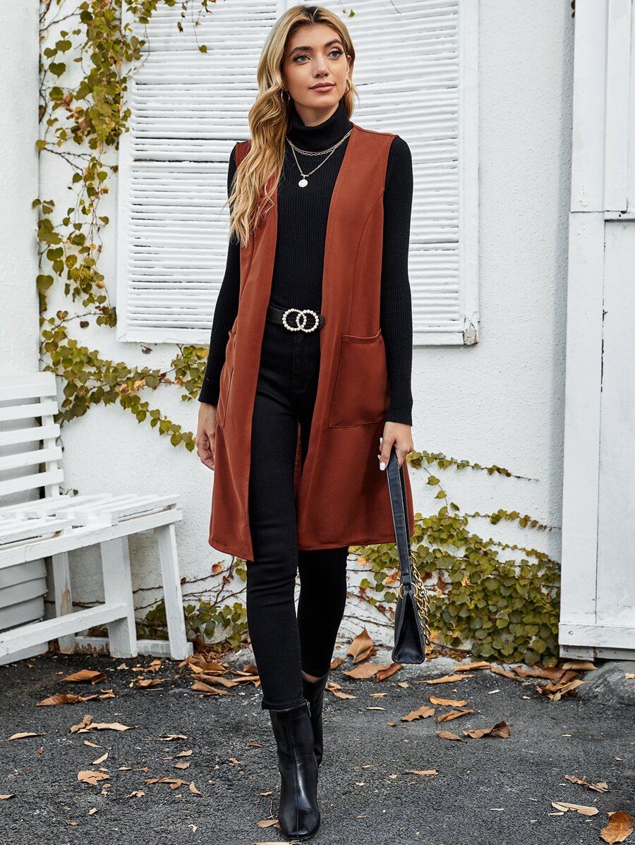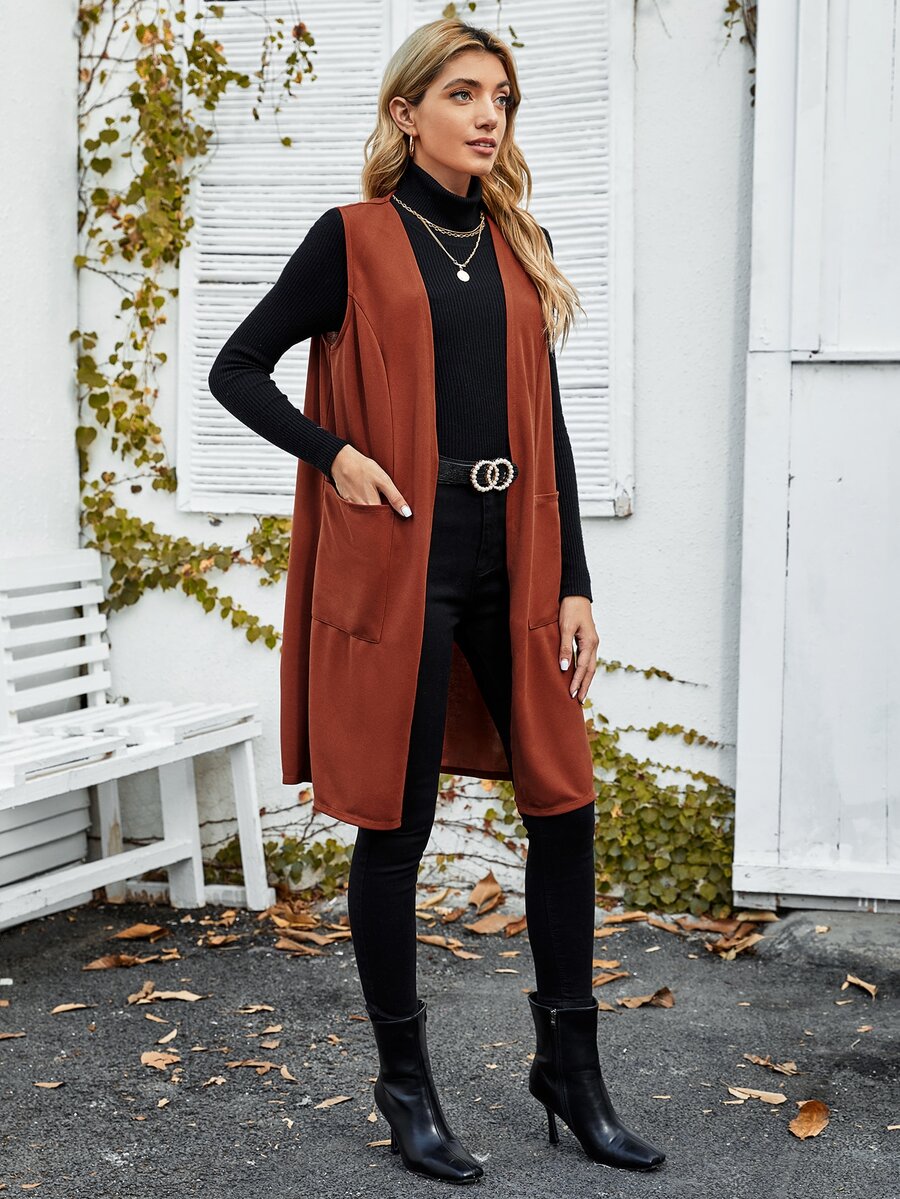 Chaleco con bolsillo delantero de parte delantera abierta