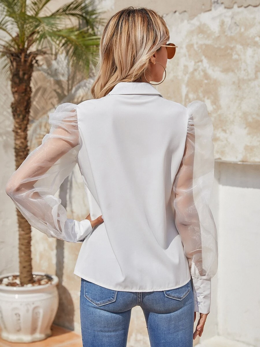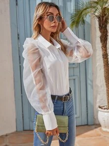 Camisa de organdí de manga farol
