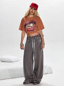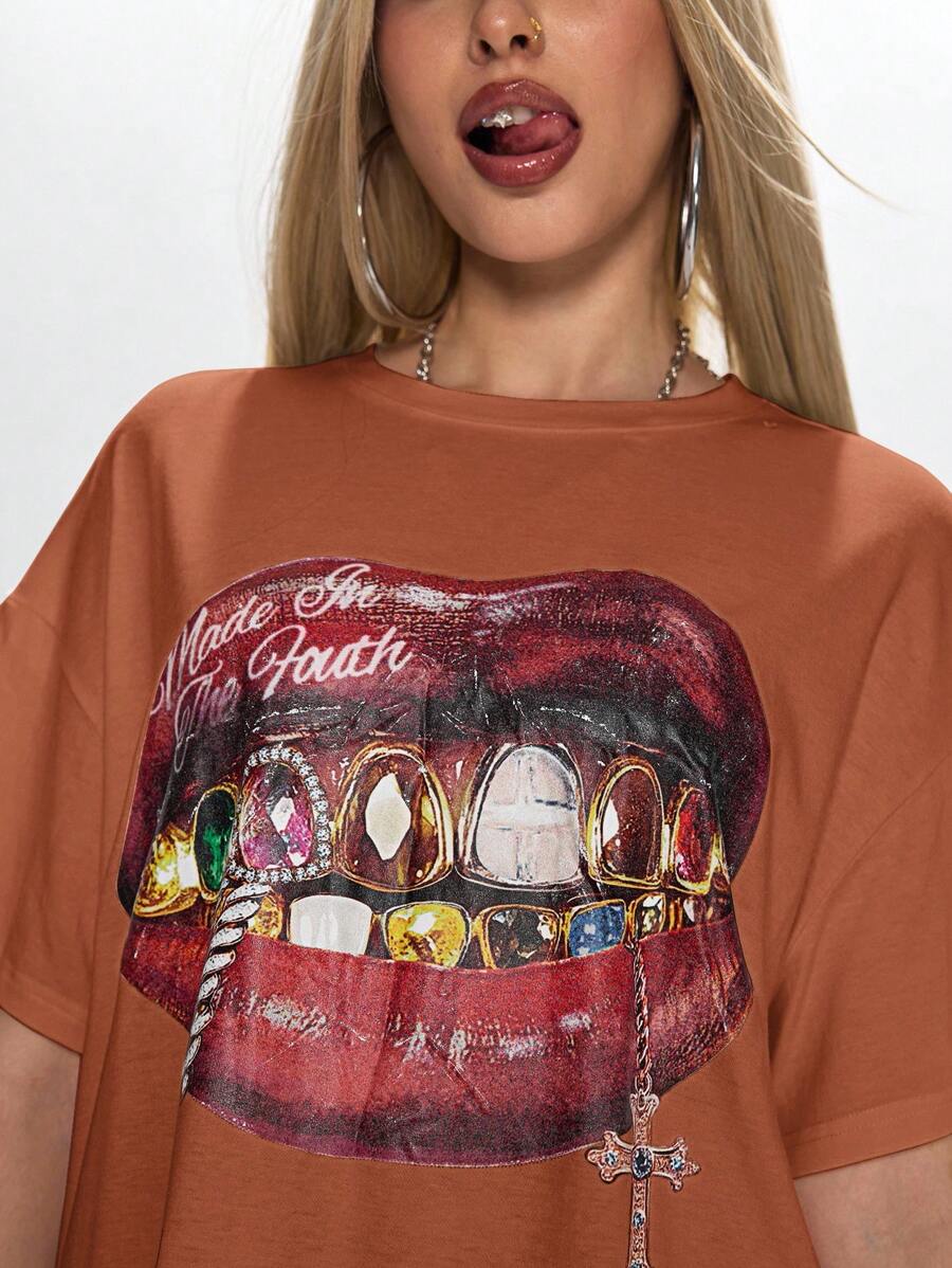 Grunge Punk Camiseta oversize de mujer con estampado de labios de "California Girl"