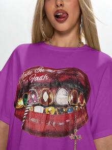 Grunge Punk Camiseta oversize de mujer con estampado de labios de "California Girl"