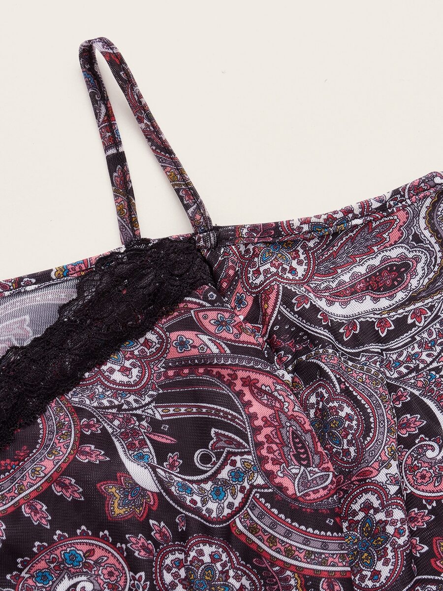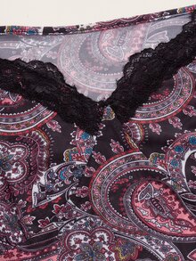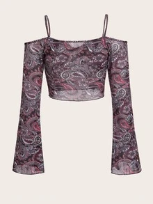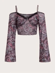 Top corto con estampado de paisley con encaje