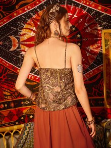 Top de tirantes con estampado de paisley ribete en forma de lechuga