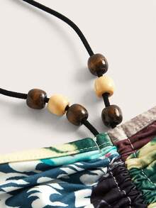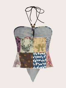 Hippie Top halter con estampado de retazo de espalda abierta con cordón bajo hanky
