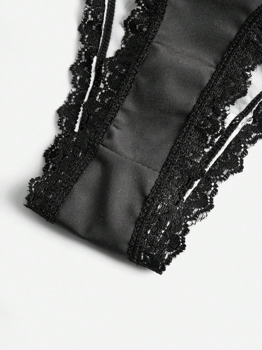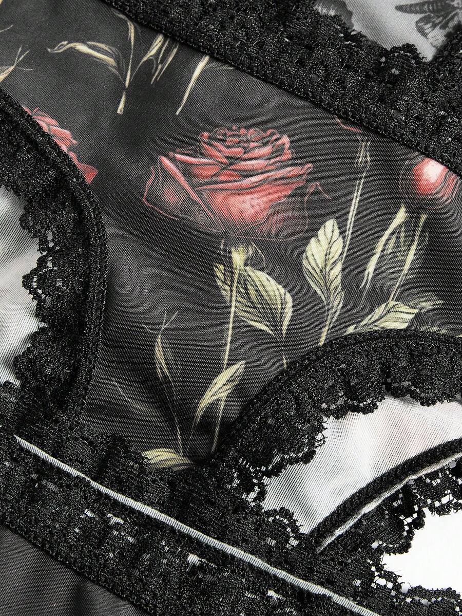 Patishop Art 3 piezas set tanga de encaje en contraste con estampado floral