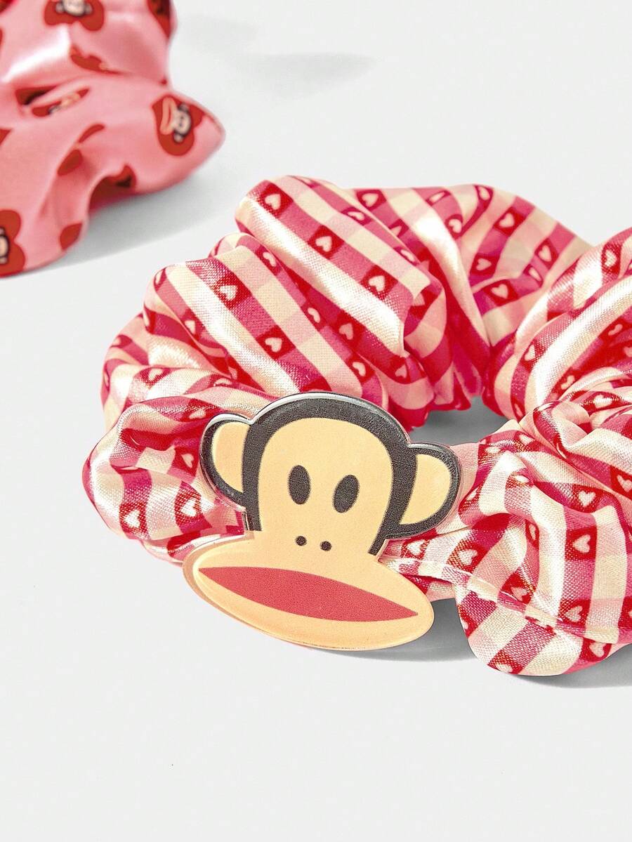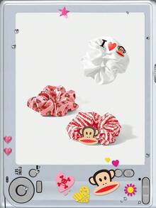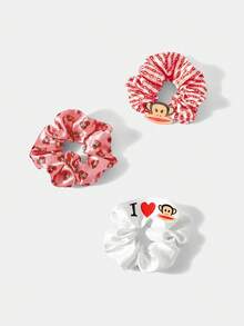 Paul Frank X ROMWE Set de 3 Scrunchies de moda para mujer con estampados a cuadros, de corazón y de dibujos animados