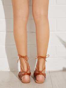 Sandalias planas cruzada de punta abierta