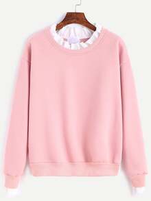 Sudadera con hombros caídos con cuello con volantes - rosa