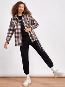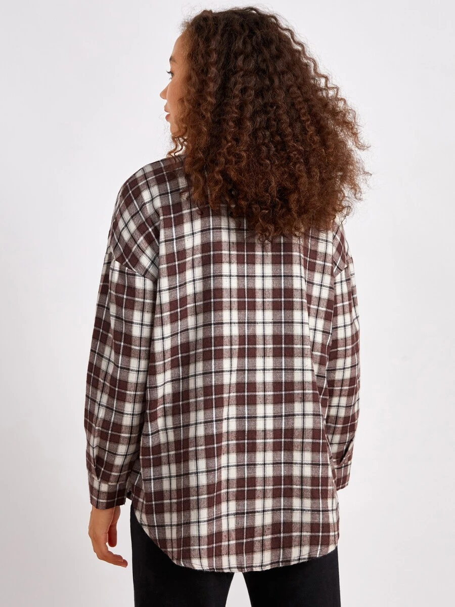 Camisa de cuadros con botón delantero con bolsillo