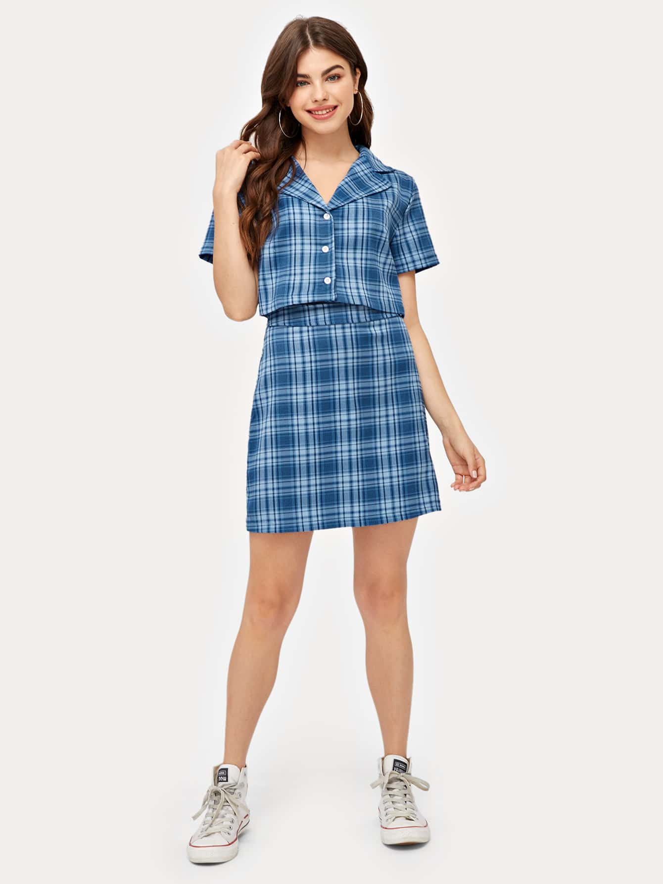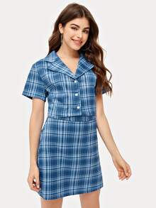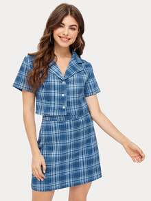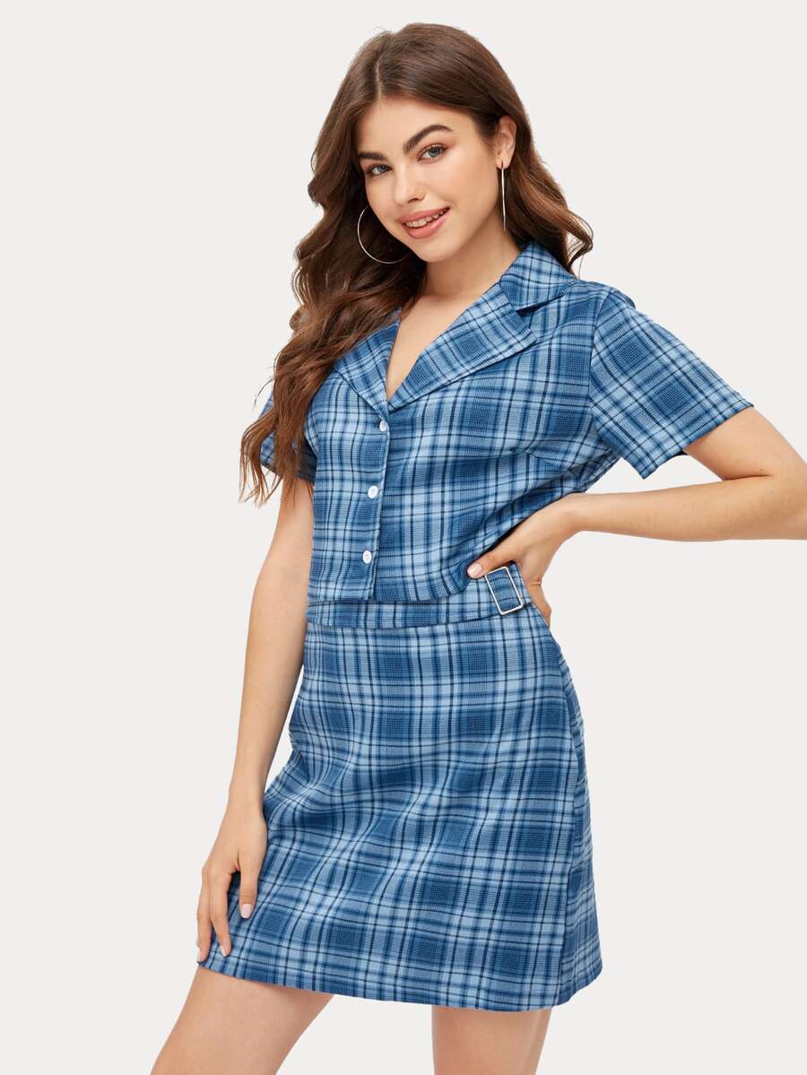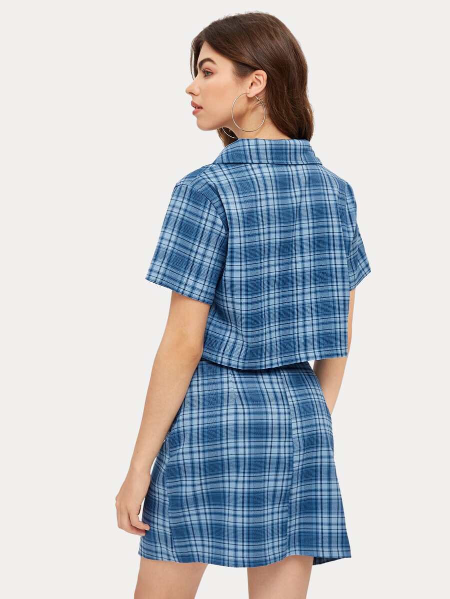 Camisa corta de cuadros con falda