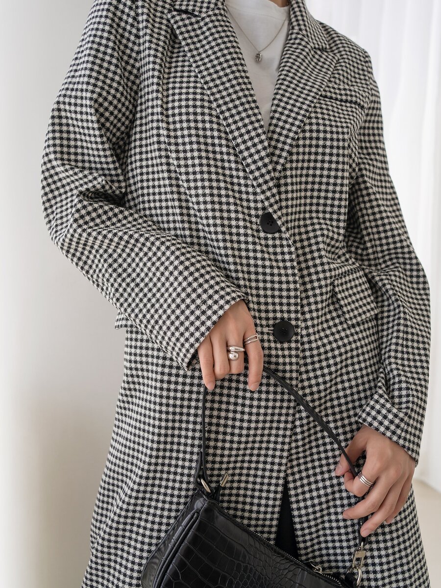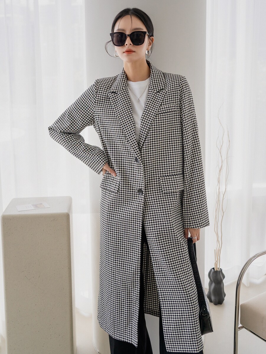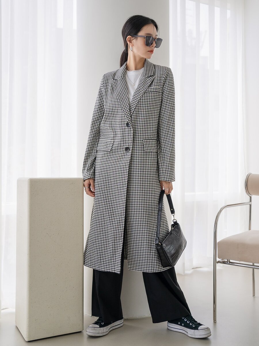 Abrigo de cuadros con doble bolsillo con solapa con botón delantero